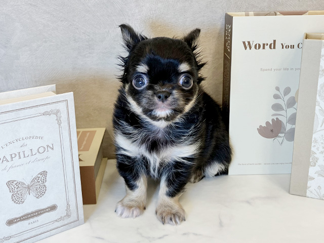 現在の写真を依頼させていただいた時は、丁寧に返事をいただきありがたかったです。すぐに次の日お店まで会いに行くと、大変丁寧に対応していただきました。購入後は、お店の方から電話をいただき、家での様子等を話してアドバイスいただくことで、安心して今まで育てることができました。最初の健康診断やワクチン接種の際にまたお店に立ち寄ってお話するのが楽しみになりました。(また、お店にいる時にトイレのしつけがきちんとできているかを見て選びましたが、)たける(ロングコートチワワのオス)は、とても育てやすく、お店で見た時やお店の方からお聞きしていた通り、トイレのしつけも楽で、とても性格の良い仔でした。お店で紹介していただいた獣医さんからも、賢い仔になるからしっかり躾を!とアドバイスいただき、安心しています。これからも頼りにしています。よろしくお願いします。
