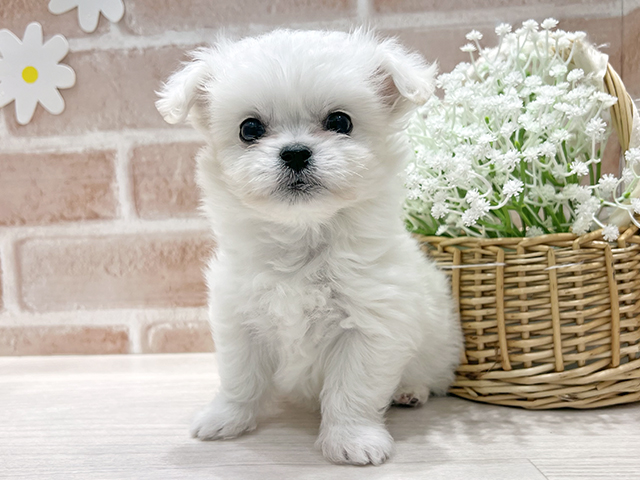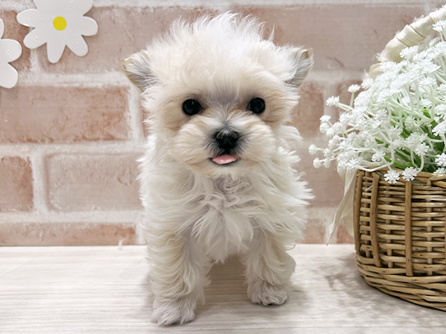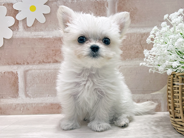 何度もペットショップには行ってましたが抱っこしたい!と思ったのははなちゃんが初めてでした。最初は他のご家族に抱っこされれてその時にはなちゃんと目が合い抱っこしたい!と言う衝動を抑えられませんでした。その場で家族全員一致ではなちゃんを迎え入れることを決めました。家に帰りはなちゃんの目を見て気づいたんですいわゆる一目惚れの原因が…昨年亡くなったパパに目がそっくりだったんです。ステキな巡り合わせでした。2ヶ月でおすわりをマスターした賢さ!また家族が増えました。本当にありがとぉございました。ショップの店員さんみなさん、いつ行っても笑顔で対応してくださるのがとても嬉しく、アフターフォローも完璧です。これからも成長していくはなちゃん共々よろしくお願いいたします。